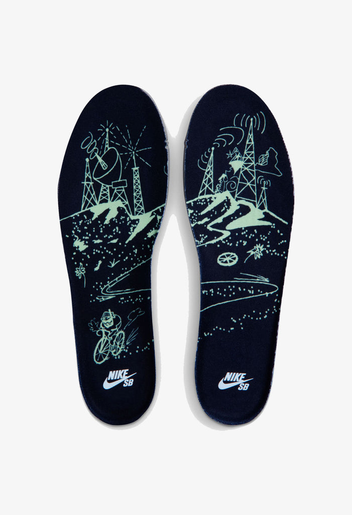 Drawing inspiration from California's Verdugo Mountains, this Nike SB Dunk Low comes crafted for the pedal-pushers and wheel-spinners alike. It celebrates the recreational mountain range that rises east of Los Angeles County's San Fernando Valley and is famous for its hiking and mountain biking adventures. A padded tongue and low-cut collar provide plush comfort, while the Air Zoom heel unit adds responsive cushioning. Inner tongue labels depict a map and mountain bike illustration. Custom graphic insoles feature the satellite dish and communication towers stationed at the top of the Verdugo Mountains. Climb your mountain...then enjoy the ride down.