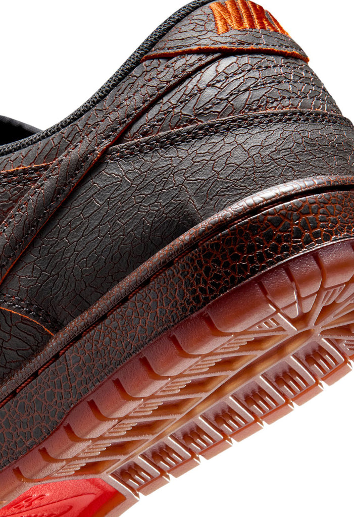 He sees you when you're sleeping... he knows when you need fresh kicks. The horned helper Krampus is on his way, and this time he's got the goods in his burlap sack in the form of a premium Dunk. Crackled Dark Smoke Grey leather channels that coal you know is going in your stocking, and a glowing orange underlay keeps your look ember-hot. Sometimes it's okay to be a little naughty.